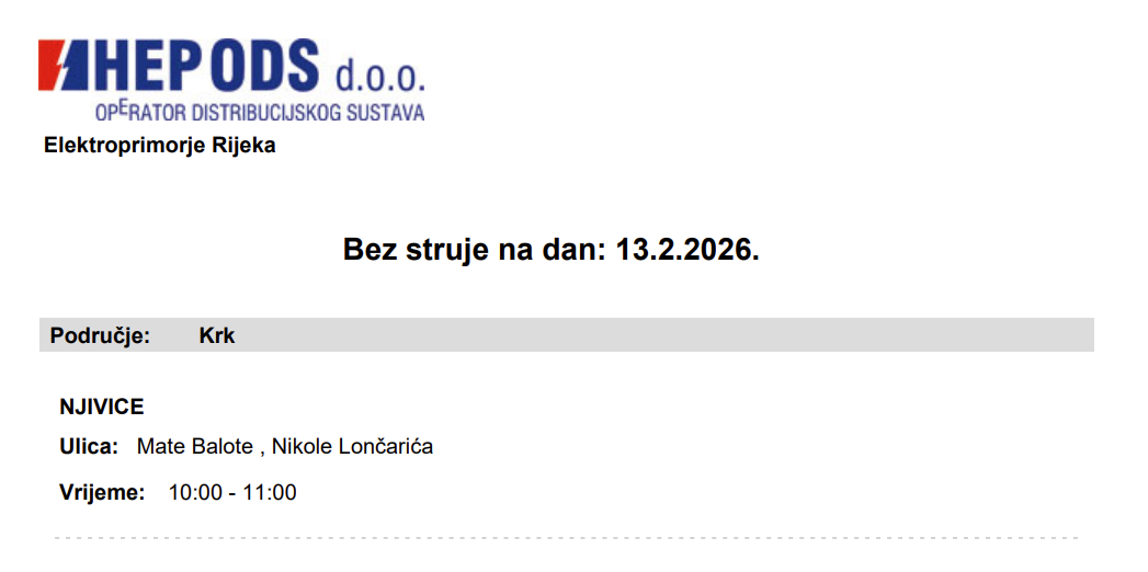 Obavijest za 13.2.2026.