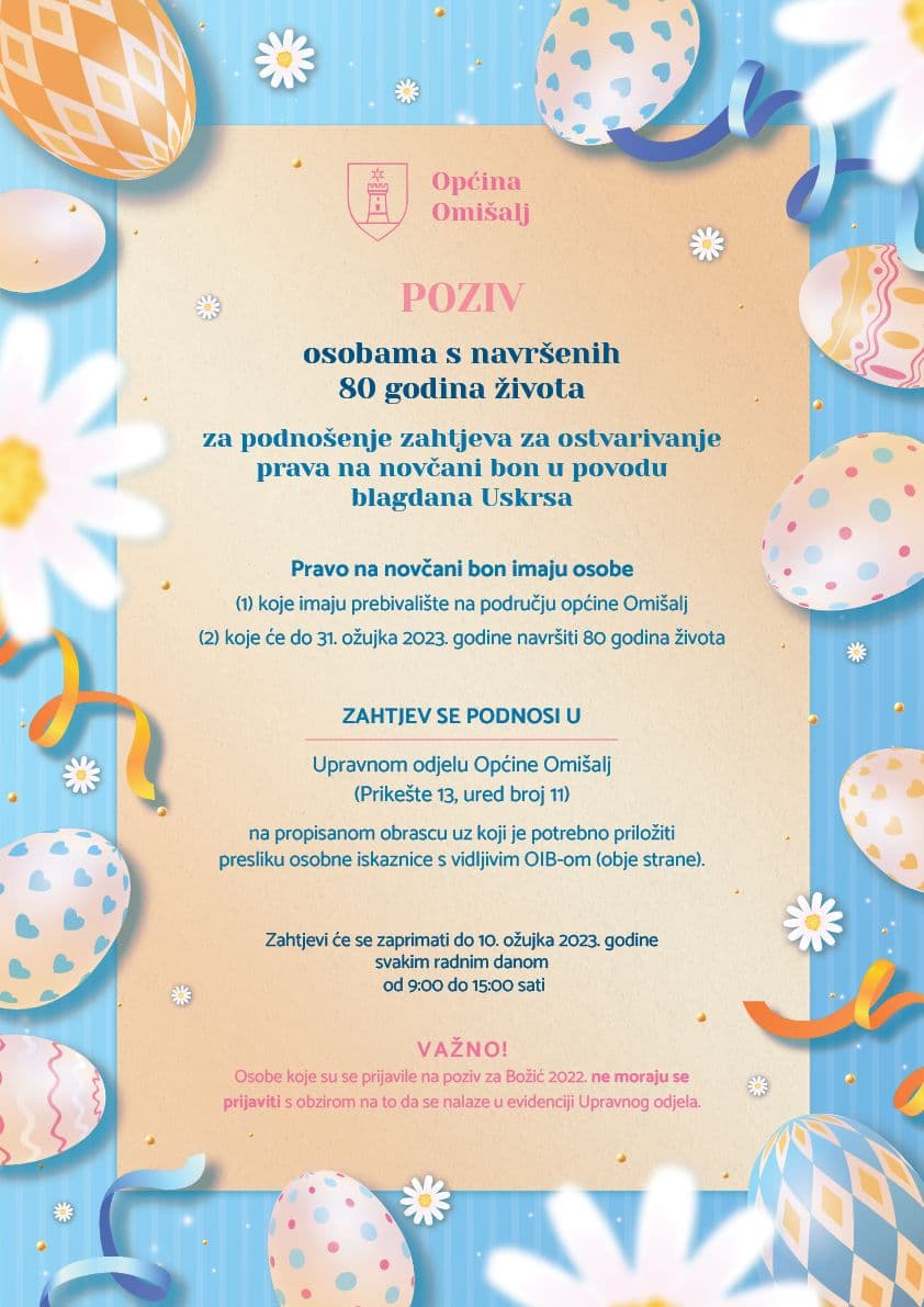 Prijave se primaju do 10. ožujka u Upravni odjela Općine Omišalj.